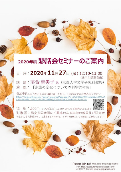 京都大学女性教員懇話会セミナーのお知らせ(11/27オンライン開催)